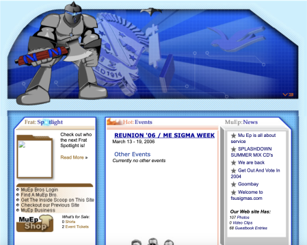 In 1998 Chapter Bro. Steve Pina was initiated into the Mighty Mu Epsilon Chapter and had a love for design and technology and wanted to take our website to the next level. And what was this amazing cool tech that was going to upgrade our site to that next level? Microsoft Word. Yes, a site completely built in Word. It was no amazing feat, but it did give the site a nice polished clean look. And it ran off FSU's free web hosting available for all students at the time. If you are a former FSU student, then you would remember this URL, followed by your initials and a 4 digit number: garnet.acns.fsu.edu